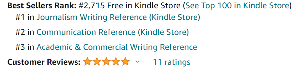 I took Thanksgiving day off, and returned Friday to continue tweeting. On Saturday, I tweeted about a promo for my book about getting into freelance science writing. It scaled the Amazon Kindle free eBook charts, reaching #1 in “Journalism Writing Reference,” #2 in “Communication Reference, and #3 in “Academic and Commercial Writing Reference” by the end of the day.